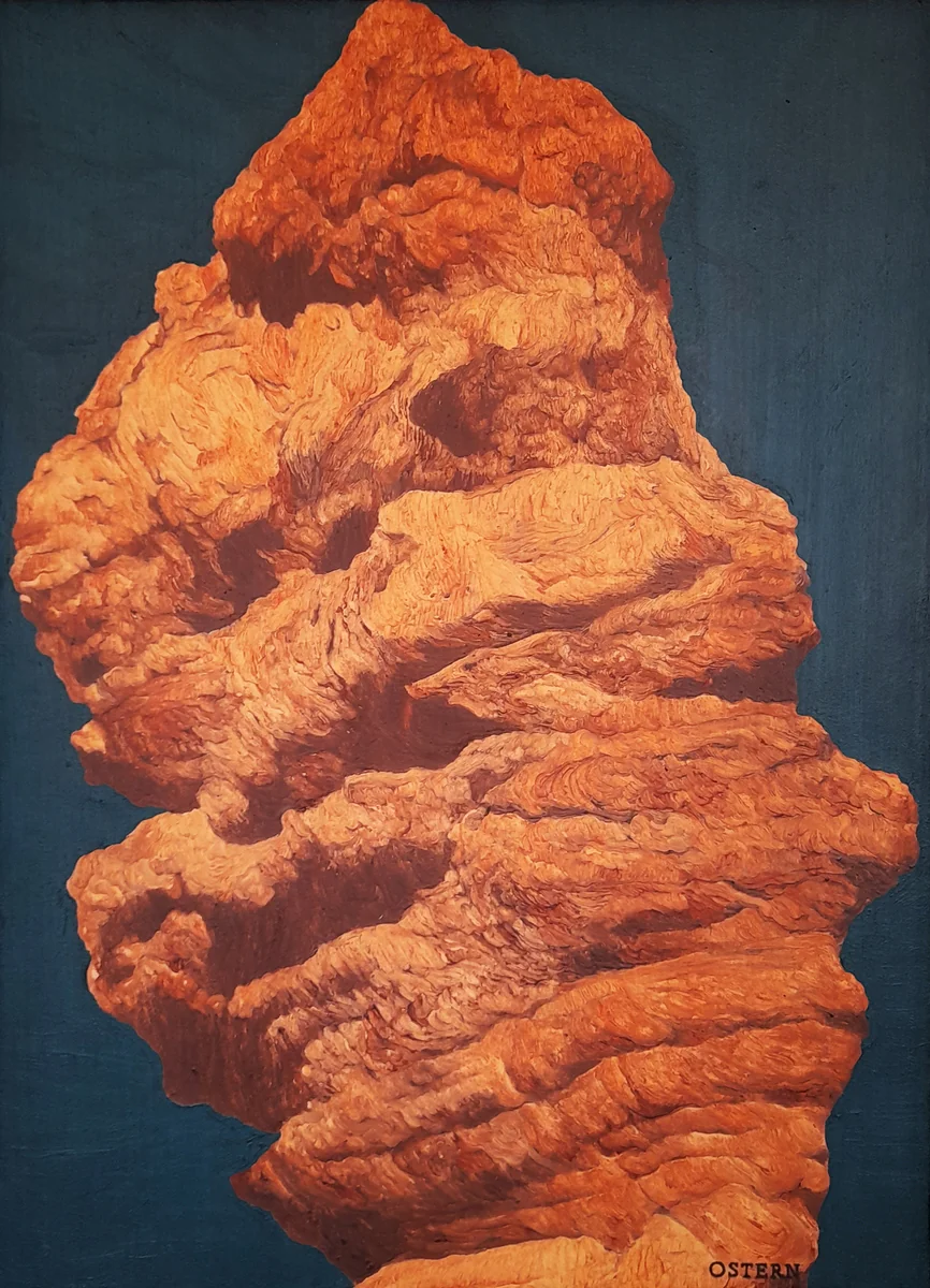 Pocas obras hay, en nuestro orbe plástico, en la actualidad, que muestren tanto la personalidad y actitud de su autor, como ésta de OSTERN. Y digo autor y no pintor, porque esta obra, siendo pintura no es sólo color y formas, sino proceso y más: investigación antropológica, profundización de un zahorí, que encuentra para seguir buscando, que cuestiona para tramar una búsqueda que le permite tejer un discurso plástico personal.