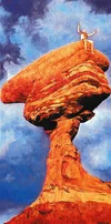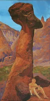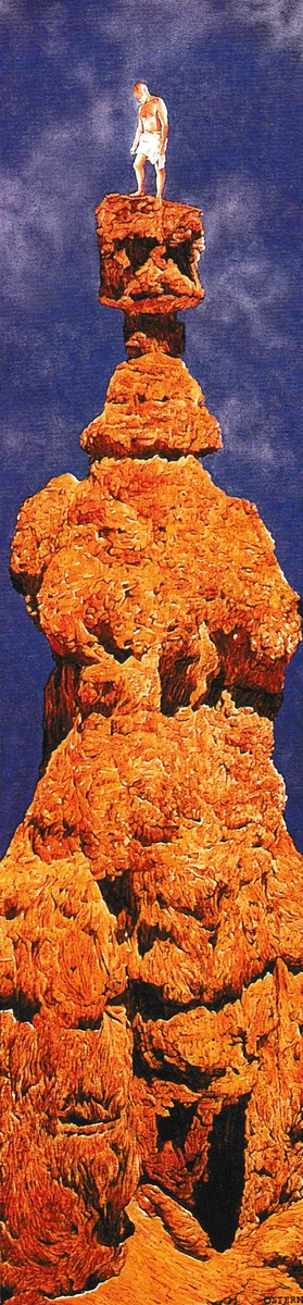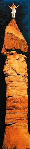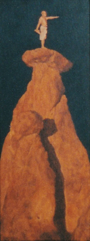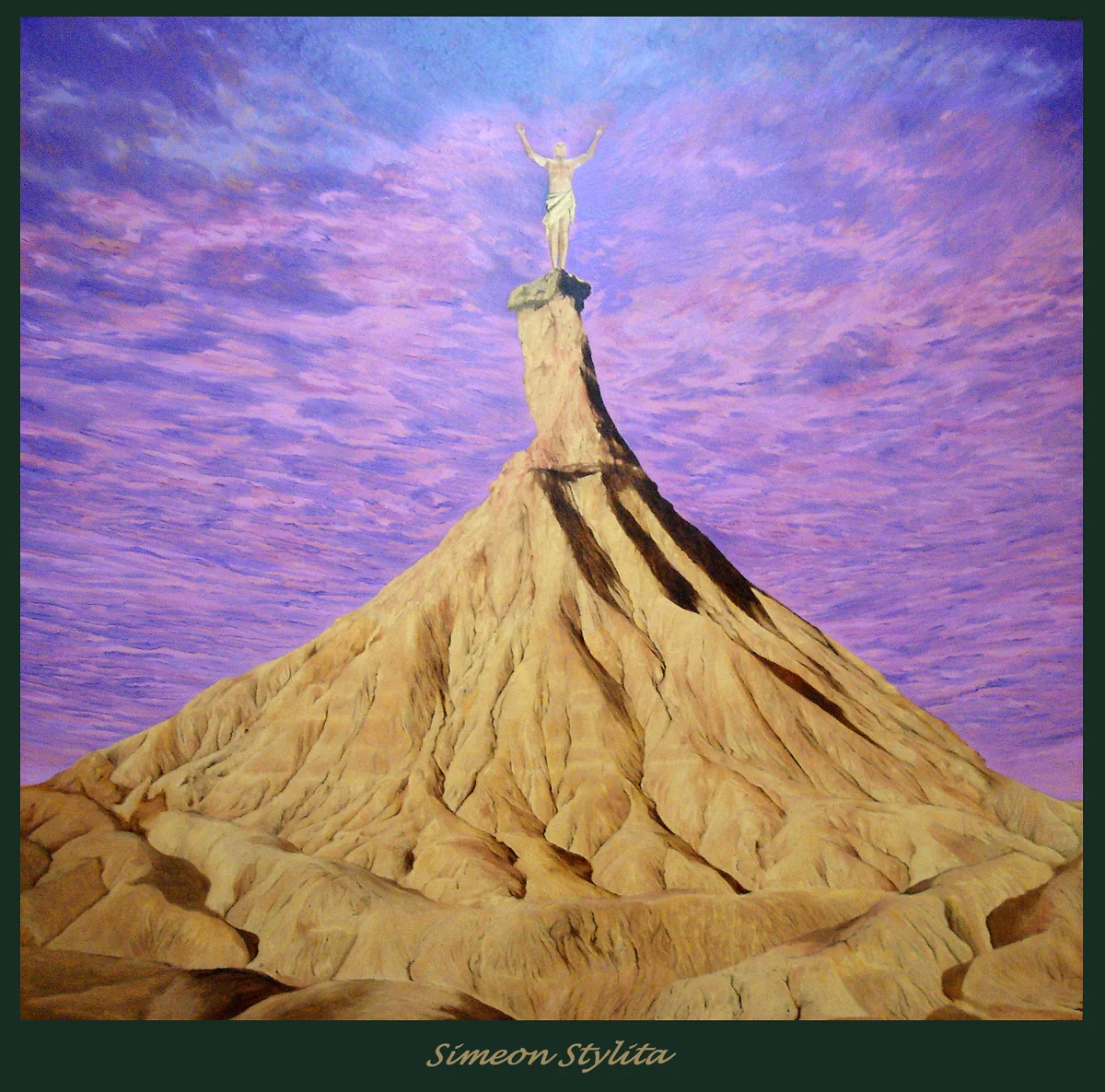 A la iconografía que le distingue se le une ahora una iconología de estilitas y estilitesas, dendritas y anacoretas, cazadores de espiritualidad y de retiro, acariciadores de la iluminación y de la visión, gentes que se suben a una altura, bien una montaña bien una columna, ora un roquedo testigo ora un hechizo, con la idea de apartarse del mundo, para mejor encontrar a Dios, con la intención de entregarse a la meditación, de situarse lo más cerca del cenit, cabe el gran protector y su secreto, para contagiarse de ello y formar parte del círculo sagrado y de la cratofanía.