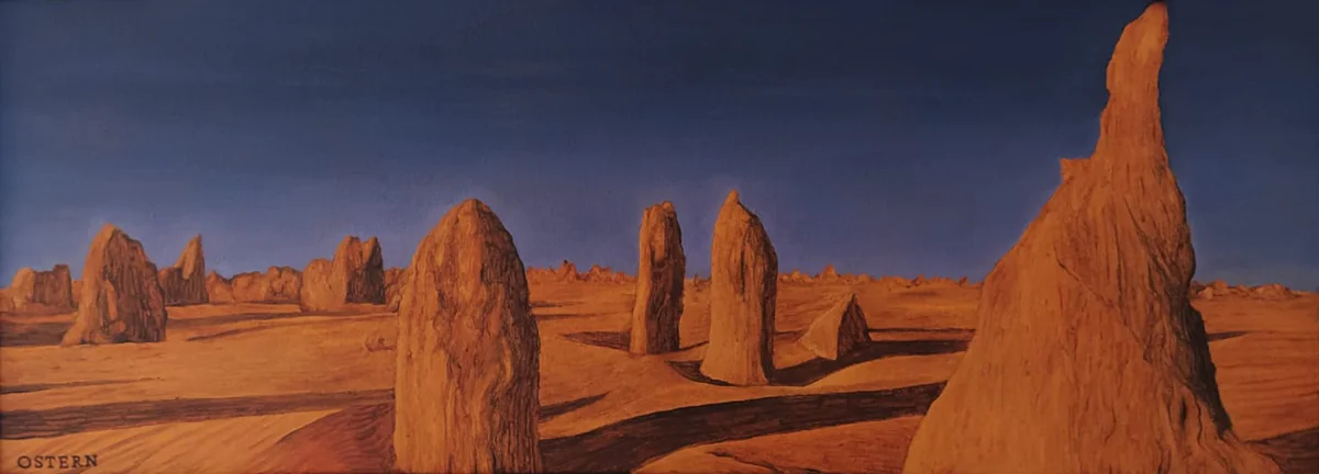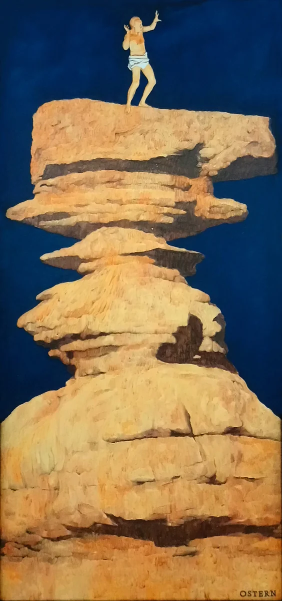 Con "Stylita", OSTERN nos da, en principio, una excelente lección de pintura, resolviendo con alfayo técnico problemas de composición y dibujo, apostando por unas gamas cromáticas difíciles y muy bien integradas, para cantar la belleza y, más que sus ideas, sus inquietudes espirituales, haciendo gala de una actitud encomiable en cuanto a recuperación de lugares perdidos, de espacios mágicos, en los que se ubica el laberinto de la soledad, y haciendo que unas imágenes sirvan para debatir, profundizar, pensar, más allá de sus otras funciones plástica, decorativa, gustosa.