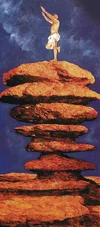 OSTERN reinterpreta esa iconografía de anacoretas que buscan el camino de la espiritualidad, y logra unas obras donde la piedra y el ser humano claman en medio del vacío. Periódico "Expansión"